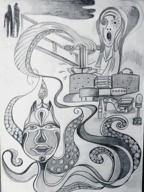 Fazendo com que a produção de certa forma, venha a se ligar ao automatismo surrealista, deixando o meu inconsciente vir a tona, expressando um modo de ver a vida.